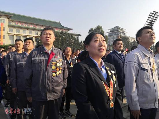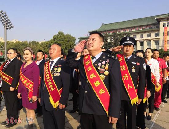 第七届全国道德模范提名奖获得者李冬生:“我参加今天升旗活动,心情无比激动,祝福祖国繁荣昌盛。”