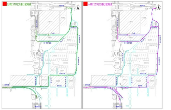 因人民大街下穿隧道工程、中铁集团开发项目、地铁6号线等工程建设,现状的交通便道和乙五路将封闭,人民大街以东没有现状路可供通行。为解决人民大街以东区域交通出行问题,有效缓解现状南出口交通拥堵,市建委通过实地选线调研,组织新建了一条能够串联丙九十九路、乙五路、丙一百四十三路的高标准交通导行便道。