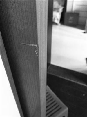 “店方送来大衣柜后,我们发现大衣柜的边板有破损,而且隔板已经开裂。”任先生表示,当时他曾要求送货人员说明情况,但送货人员却表示,只要刷漆就能解决,并离开了他家。