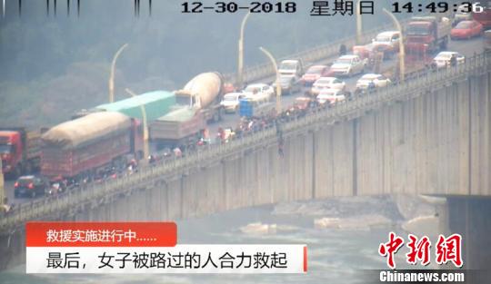 四川一男子冒险翻越长江大桥围栏救起欲跳江轻生女