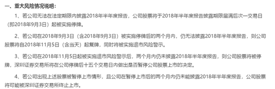 [ST长生:预计无法在法定期限披露半年报]ST长生21日晚公告称,公司原定于2018年8月31日披露公司2018年半年度报告,全资子公司长春长生由于狂犬疫苗事件被调查,导致公司半年报编制工作陷入停顿,公司预计无法按照预定时间披露2018年半年度报告。公司将与有关部门协调,在保证狂犬疫苗案件正常调查的基础上,尽早完成2018年半度报告披露工作。