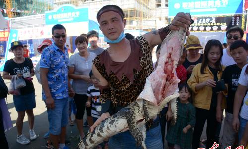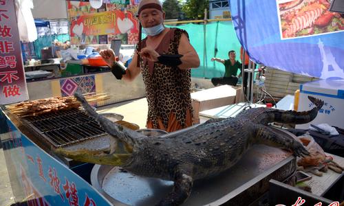 山东聊城街头现鳄鱼肉烤串 30元一串引围观(图)